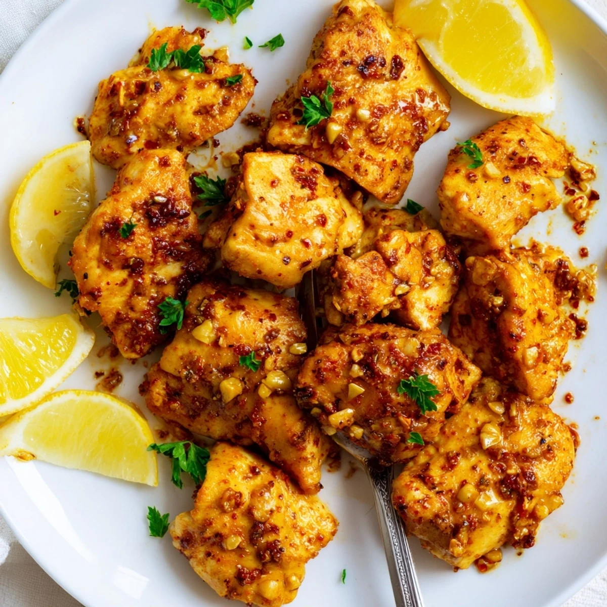 These bite-sized chicken pieces get their bright, zesty flavor from a simple marinade of fresh lemon juice, garlic, oregano, and paprika. The air fryer creates beautifully crispy exteriors while keeping the meat tender and juicy inside. Marinate for just 15 minutes or up to two hours for deeper flavor, then cook at high heat for eight to ten minutes. Perfect as a quick appetizer, protein-packed snack, or light main dish served with fresh parsley and lemon wedges.