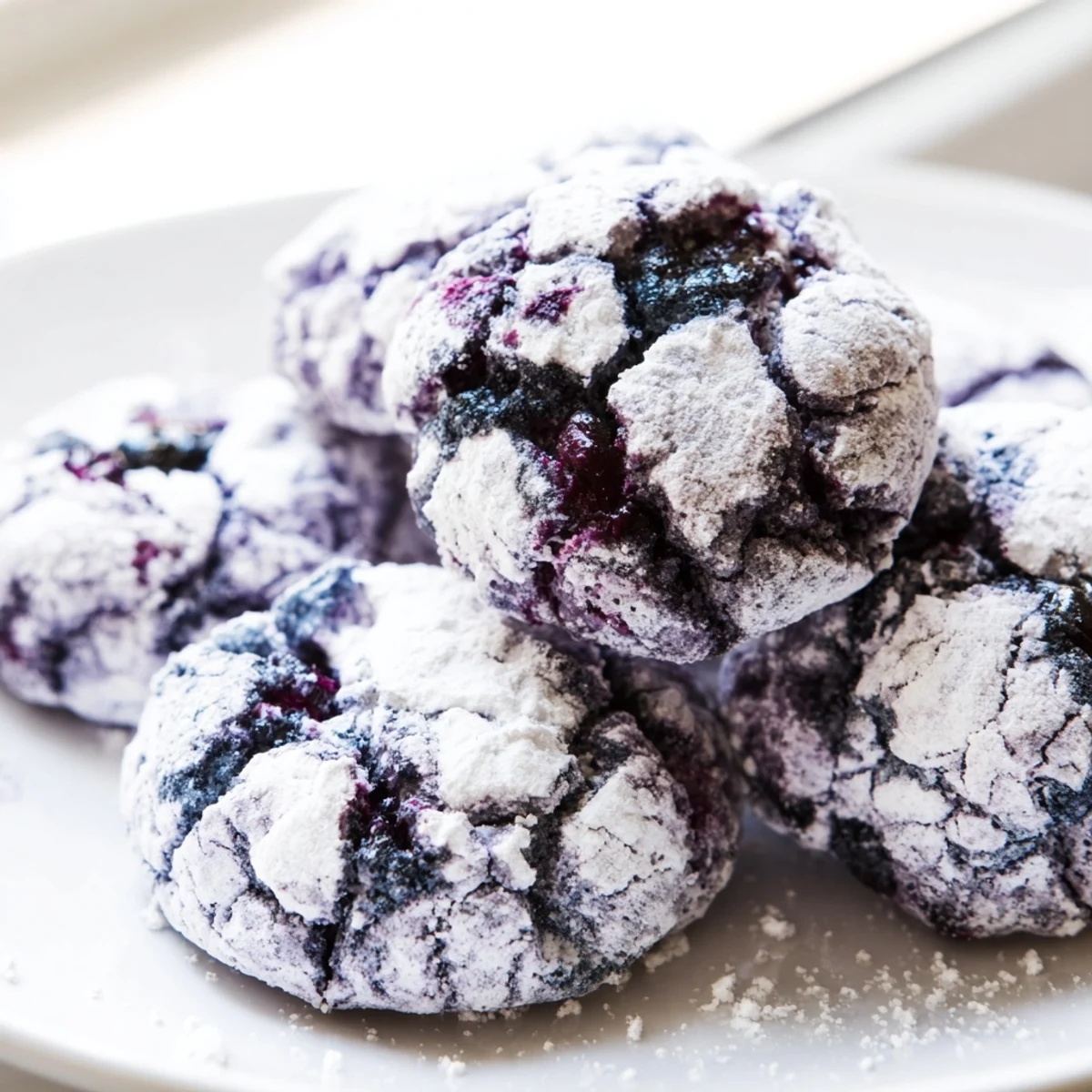 These soft blueberry crinkle cookies combine a tender, chewy texture with bright bursts of fresh fruit. The dough features mashed blueberries for consistent flavor distribution and whole berries for delightful pockets of sweetness. A generous coating of powdered sugar creates the signature crinkled appearance as the cookies bake, resulting in stunning visual appeal that matches their incredible taste.