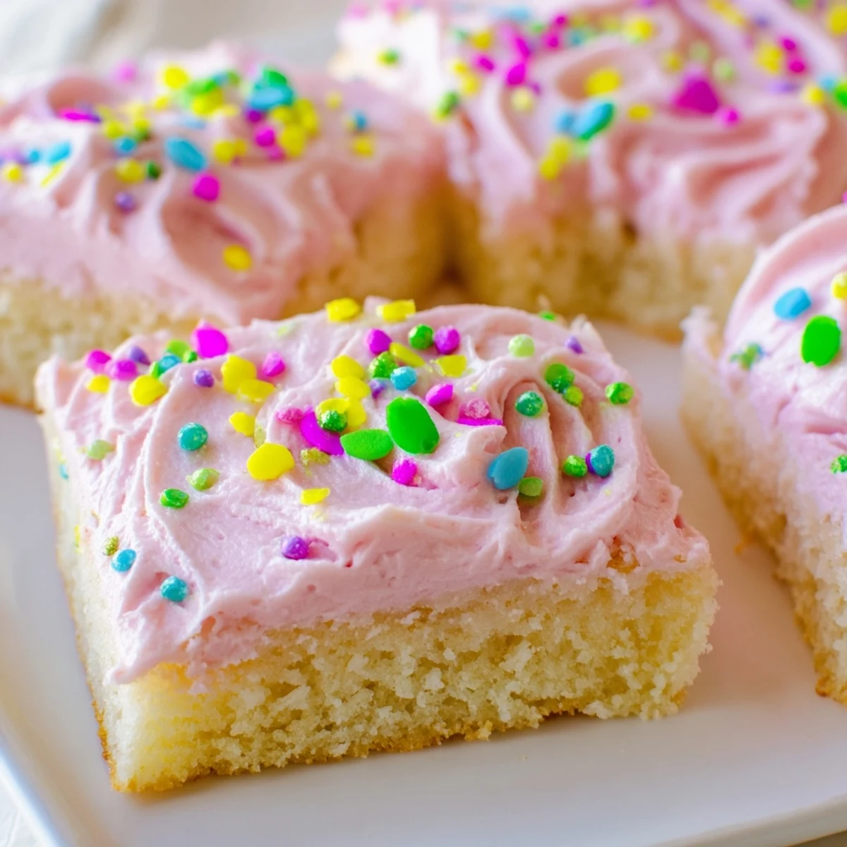 These soft and tender sugar cookie bars offer all the classic flavor you love in an easy bar format. The buttery vanilla base bakes up golden around the edges while staying perfectly soft in the center. A creamy vanilla frosting gets tinted in beautiful pastel shades—think soft pink, lavender, mint green, and lemon yellow—then topped with celebratory sprinkles. They come together in just 40 minutes from start to finish and yield 16 generous squares. The decoration possibilities are endless: pipe swirls, create ombré effects, or keep it simple with spread frosting and colorful sprinkles.