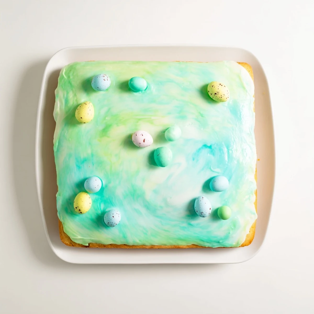 This tender vanilla cake features crushed candy-coated robin eggs folded into a fluffy buttermilk batter, creating colorful specks throughout each tender slice. The pastel glaze adds a playful finishing touch, making this an ideal centerpiece for spring brunches, Easter gatherings, or whenever you want something whimsical and sweet.