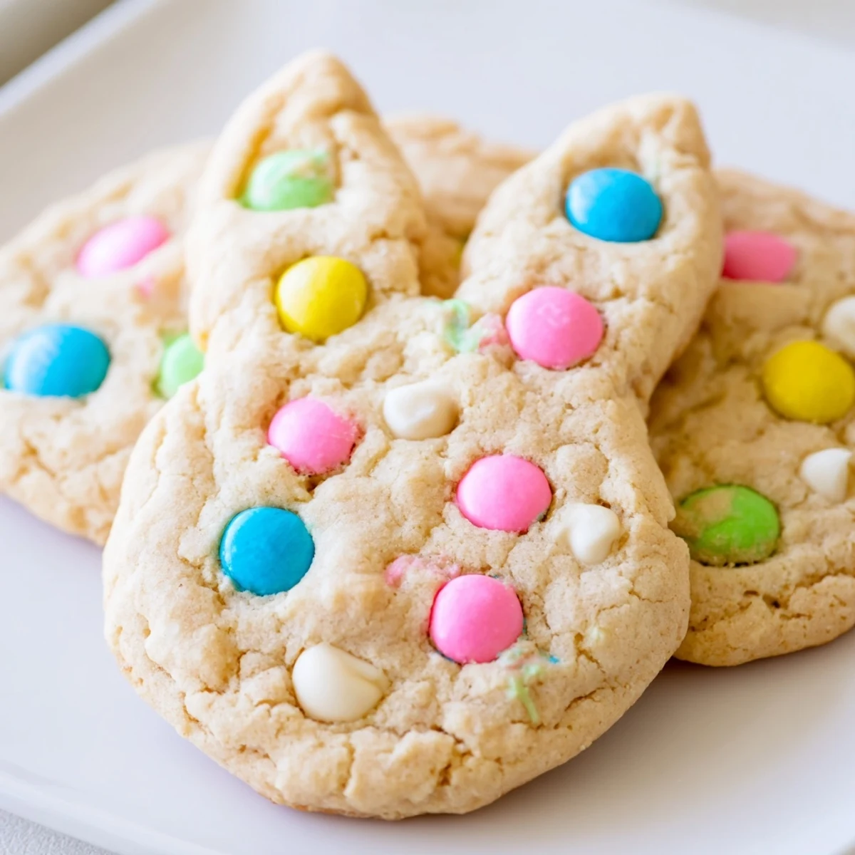 Create the most adorable soft and chewy bunny cookies loaded with colorful chocolate candies. These treats feature a buttery, tender dough studded with pastel M&Ms and optional white chocolate chips for extra sweetness. Each cookie gets topped with extra candies and optional bunny decorations for maximum charm. Ready in just 30 minutes, they're perfect for sharing with family and friends during spring gatherings.