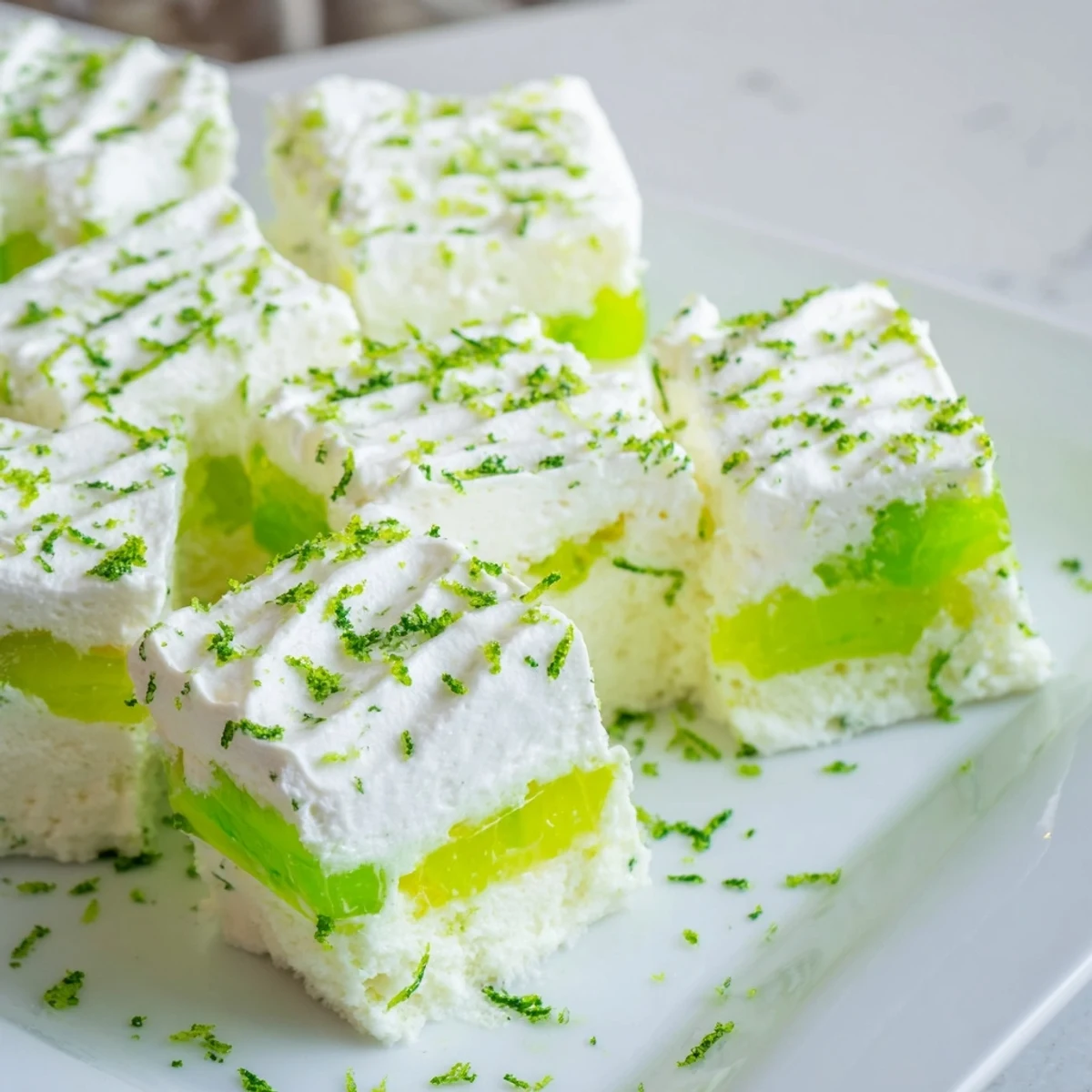 - Sprinkle fresh lime zest over the top, add green sprinkles or lime slices, then cut into squares and serve cold.